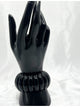 This bold, black bangle features a series of polished, rounded segments that create a chunky, seamless look. Sleek and sophisticated, it’s an ideal statement piece that brings a touch of modern edge to any ensemble.